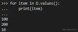 如果想要迭代字典里的value,那么可以通过字典.values()来对value进行迭代,比如: