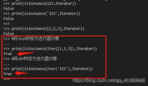 在python中生成器都是迭代器对象,但list、dict、str虽然是可迭代对象(Iterable),却不是迭代器对象(Iterator)。但可以通过iter()函数将list、dict、str这类的可迭代对象转变为迭代器对象,比如: