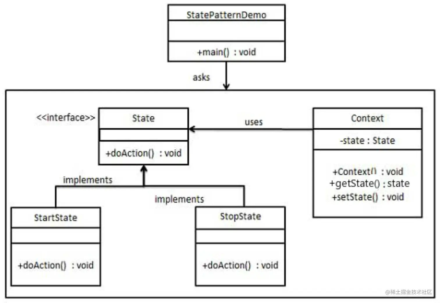 3、StatePatternDemo 场景类,进行演示状态模式