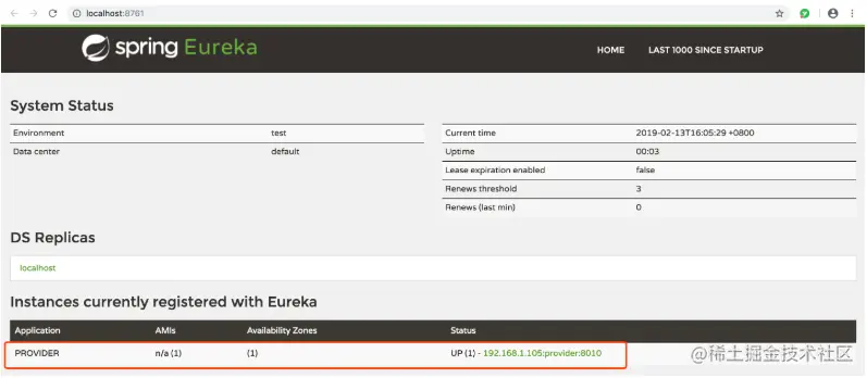 打开浏览器,访问 http://localhost:8761,看到如下界面。