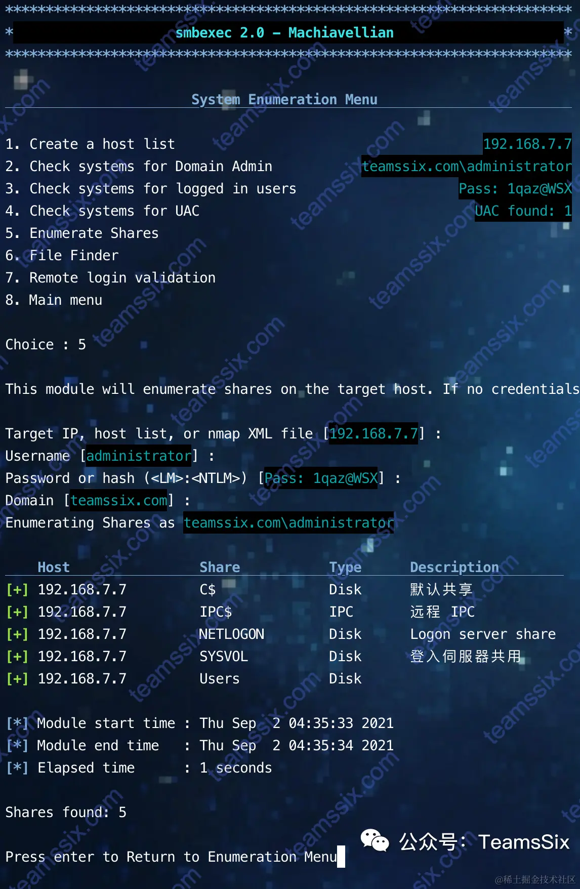 5. Enumerate Shares // 获取目标系统中的网络共享目录