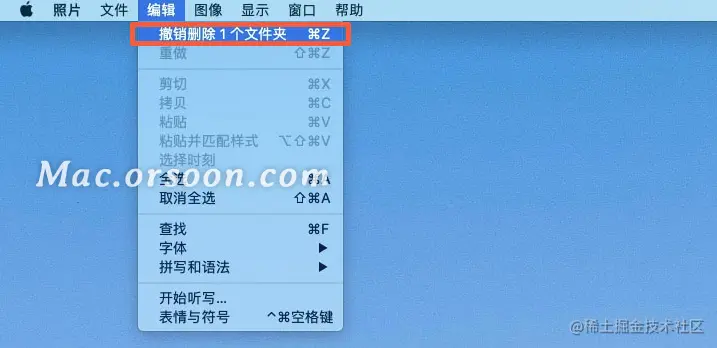 文件夹及其中的相簿会从图库和 iCloud 中移除,但相簿中的项目仍保留在您的照片图库中。如果您无意中移除了文件夹,请选取“编辑”>“撤销删除文件夹”来进行恢复。