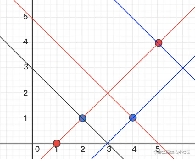 - 找出过其左端点以及左端点左边那些点的,斜率为 1 的直线中,截距最小的直线,记为 L。