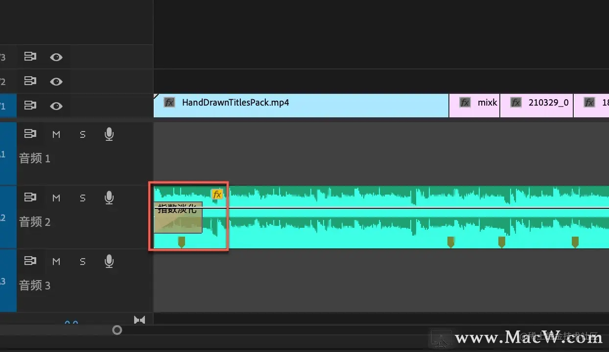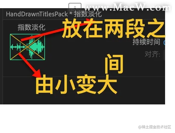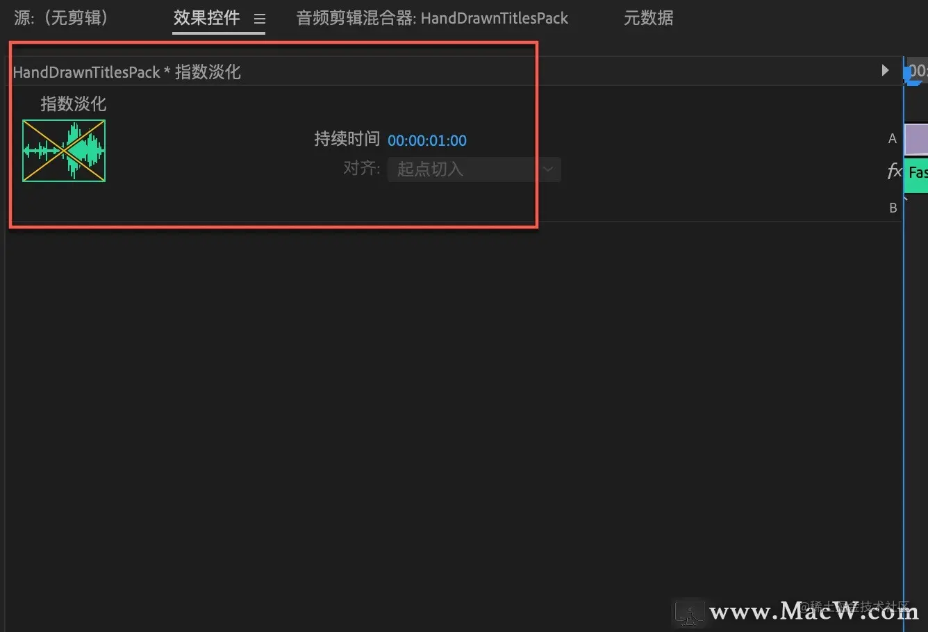 如果想为音频添加转场,只需要左键拖动转场效果到音频上即可,添加后也会显示转场名称