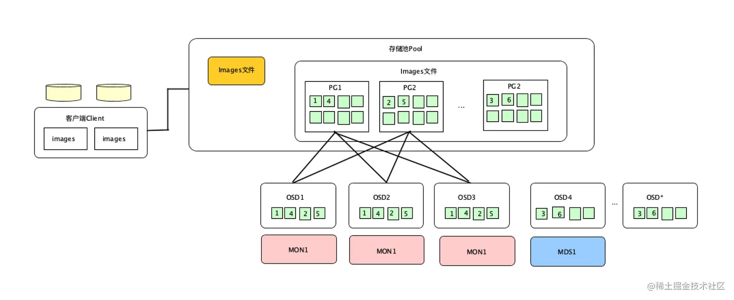 一个存储池用来文件存储 把存储池格式化成Ceph文件系统