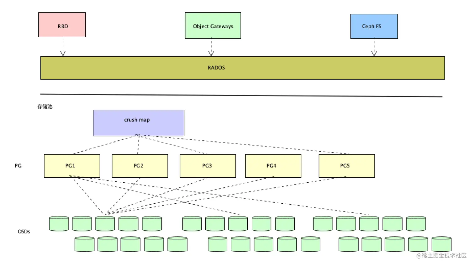 然后有pg把数据写入到osd中