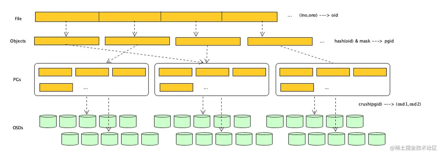 hash(oid) & mask 得到一个pgid