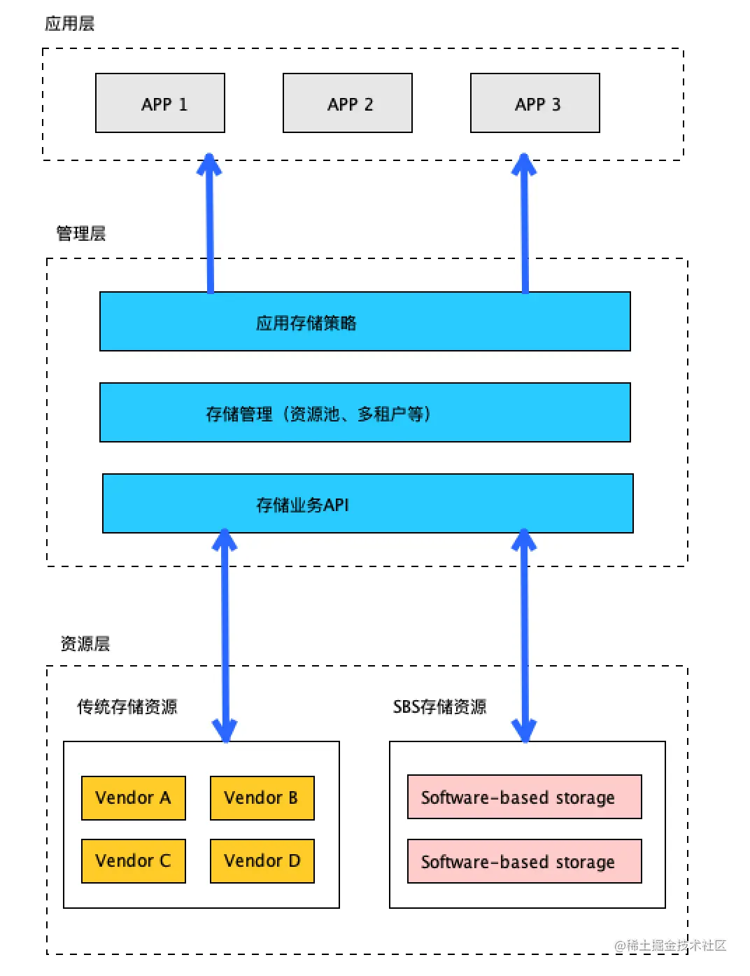 - 传统软硬件一体的存储资源