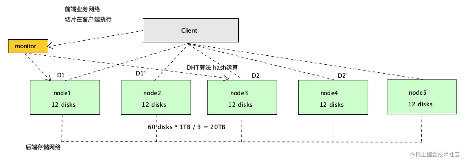 是所有服务器 所有硬盘一起参与 所以不可能出现烟囱式的这种瓶颈
