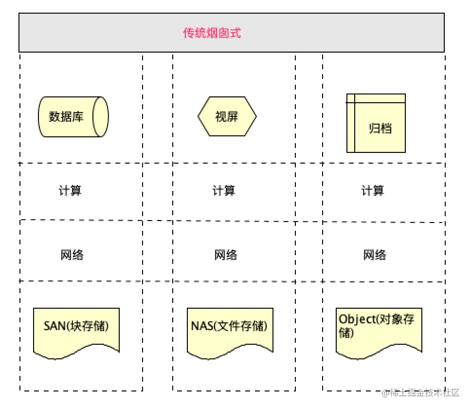 烟囱式:每一个存储提供给自己的业务