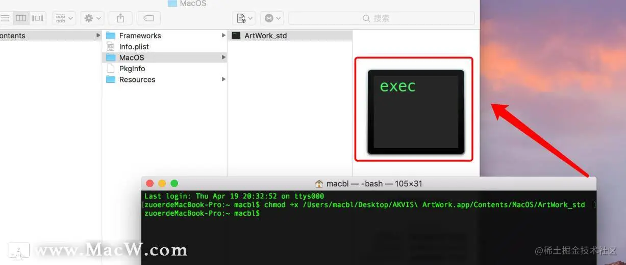chmod +x”,注意“chmod”和“+x”中间有个空格,然后再次空格,将“ArtWork_std(或Plugin Installer)”文件拖入终端,接着回车。