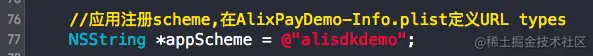 2-7、另外我们需要在应用中注册appScheme,这个Scheme可以从上面代码中获取: