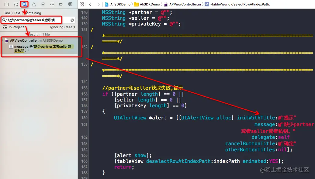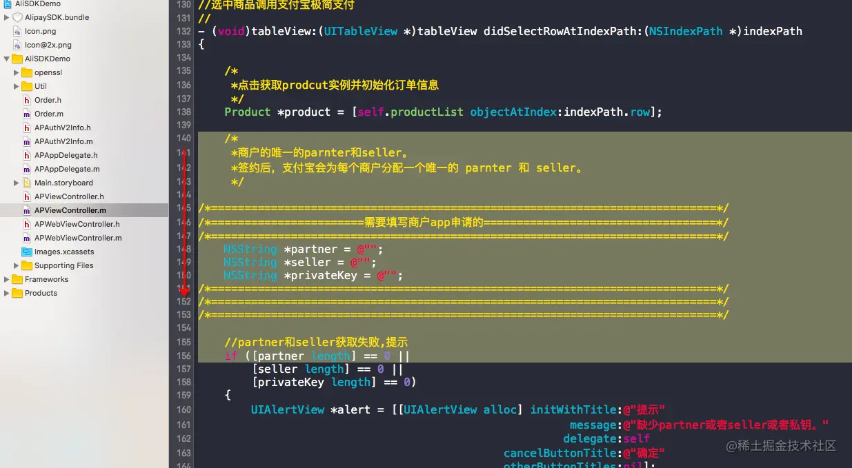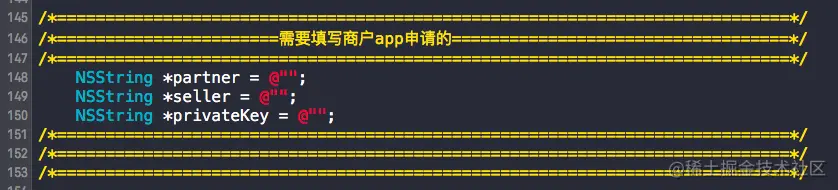 从上面图中的148、149、150行代码,我们可以看到,我们需要三个参数的值:partner、seller、privateKey。