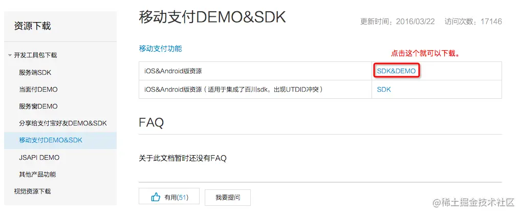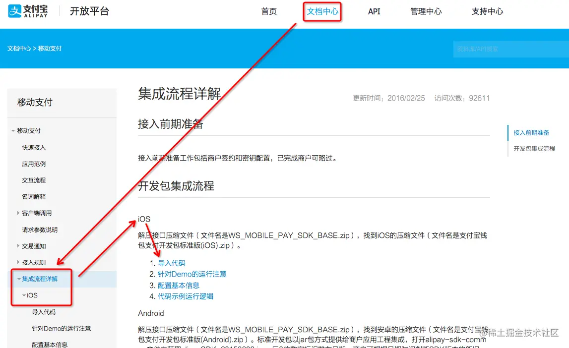 然后就会进入下面的一页,网址这里顺便给出:doc.open.alipay.com/doc2/detail…