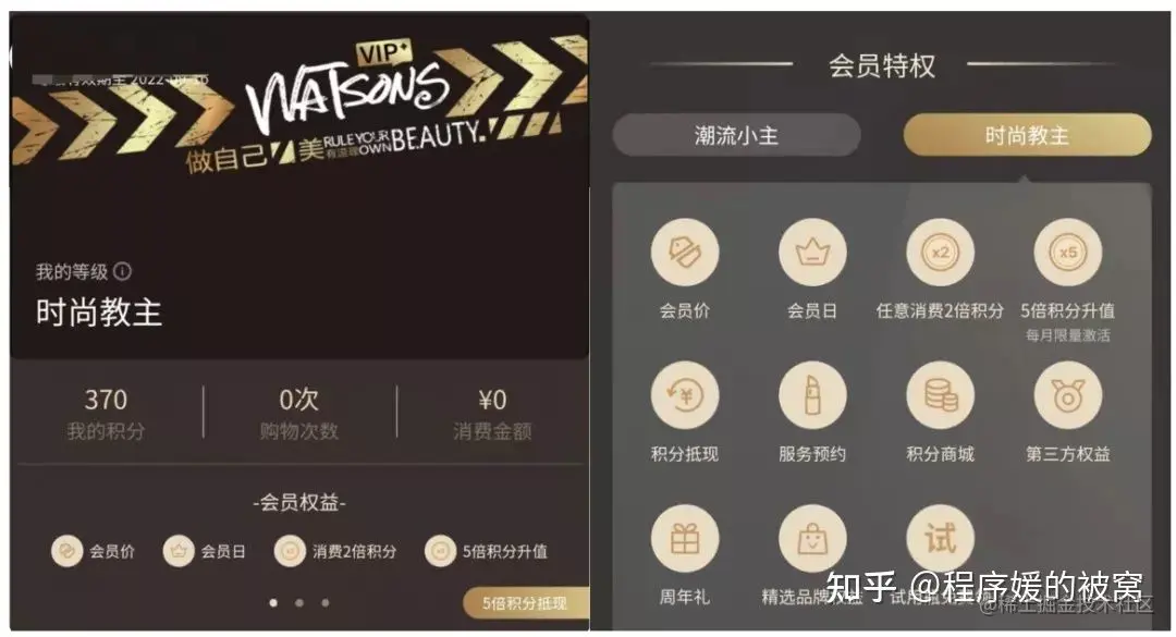 一家国际零售及食品制造机构,经营范围包括保健产品、美容产品、香水、化妆品、日用、食品、饮品、电子产品、洋酒及机场零售业务。有会员积分权益,但是没有对应的等级折扣,主打会员商品组合折扣。凑单满减这个策略,是真的绝,经常为了减30而多买100元的东西。对于有松鼠囤积症的患者来说,哦,不,消费者,简直就是个劫难,经常还觉得自己勤俭节约才买这么多东西的,没想到未拆封的商品天天在家吃灰。比如π酱,家里因为打折买的商品都可以开一个屈臣氏小超市了。