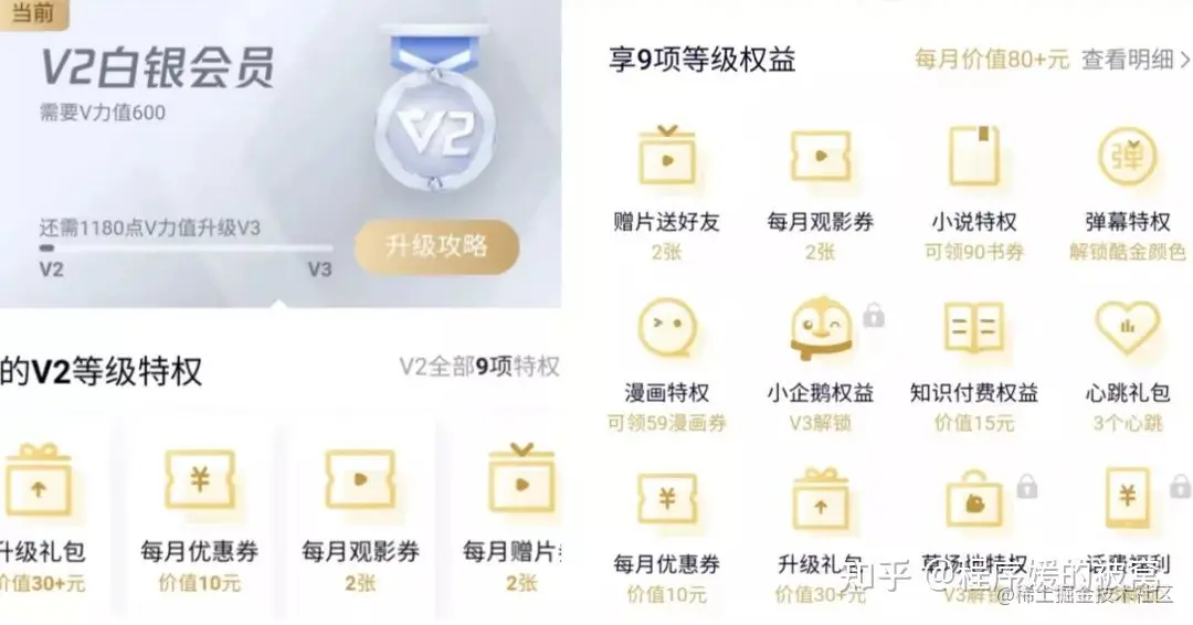 从严格的产品逻辑来看,会员体系应该分为积分体系和会员成长体系两种。成长体系的作用是作为一种激励方式,提升用户主动活跃度,增强用户的粘性,形成竞争壁垒。换句话说,就是给用户荣誉感和满足虚荣心,我们上面说到的早期QQ会员属于成长体系。积分体系的作用是,作为回馈用户的站内货币,把积分作为一种营销工具,当积分积累到一定程度的时候,就可以换购商品。当然,这么专业的话不是π酱说的,是边岸在一篇分析拼多多为什么不做会员体系中提到的。