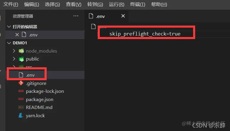 出现上述错误可以尝试在项目目录中创建.env文件,在文件中输入下面一行