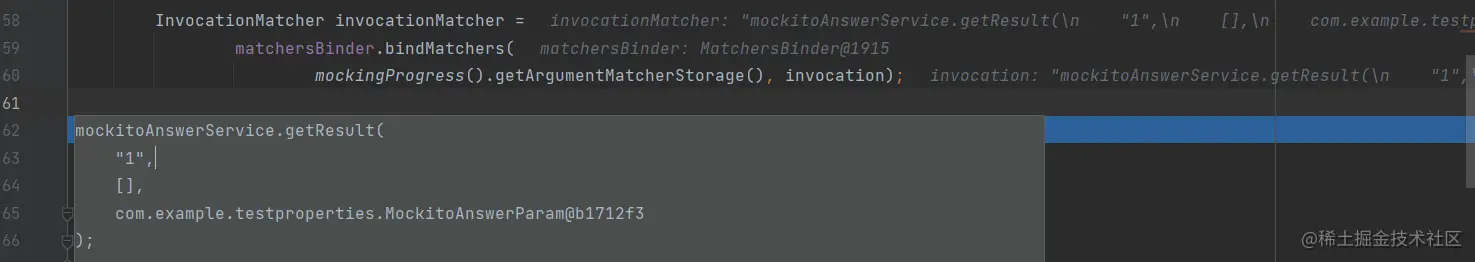 这里说明以下,handle 方法在 when 中会被执行一次,再后面实际调用时还会执行一次,所以一次 when(method) 到实际 mock 调用,会执行两次。这里最开始在 debug 时,每次第一次走到都没符合预期返回 then 的值,后面通过分析堆栈发展调用入口时 when 中 mock 发起,并非时后面实际测试调用发起,才解释了这个没有预期返回结果的情况。