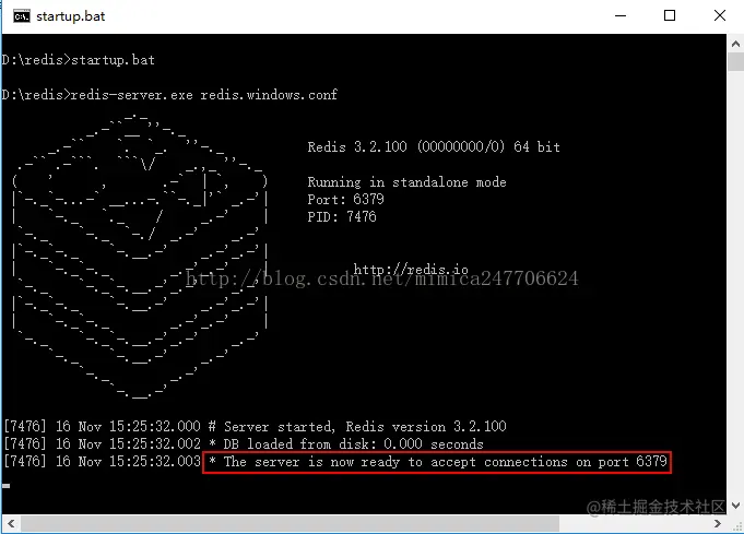 - 使用startup.bat脚本启动redis服务