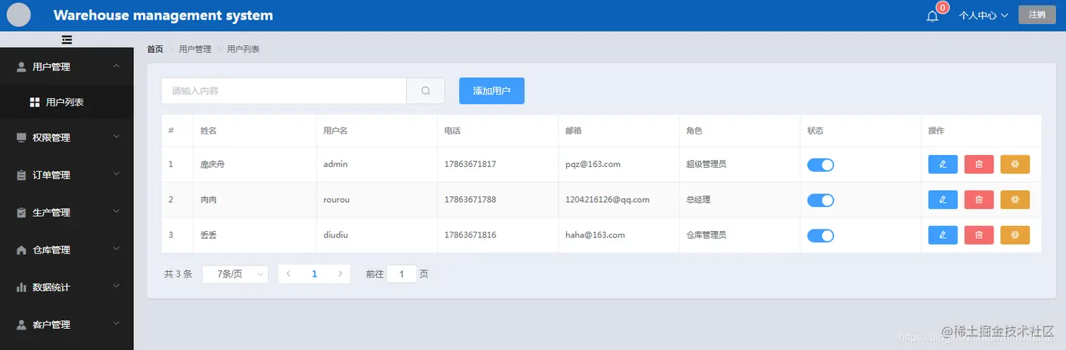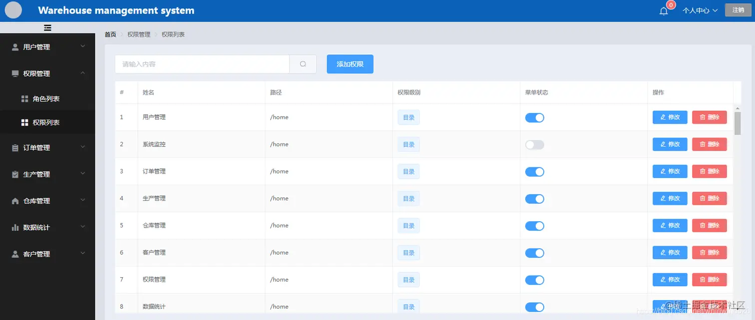 主要功能包含用户管理模块,权限管理模块,订单管理模块,生产管理模块,仓库管理模块,数据统计模块,客户管理模块。