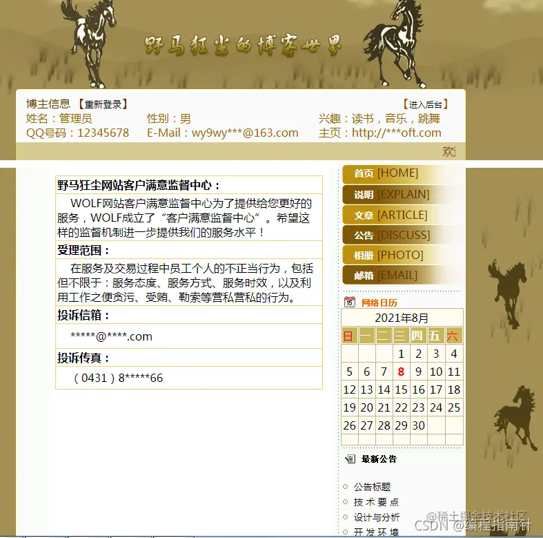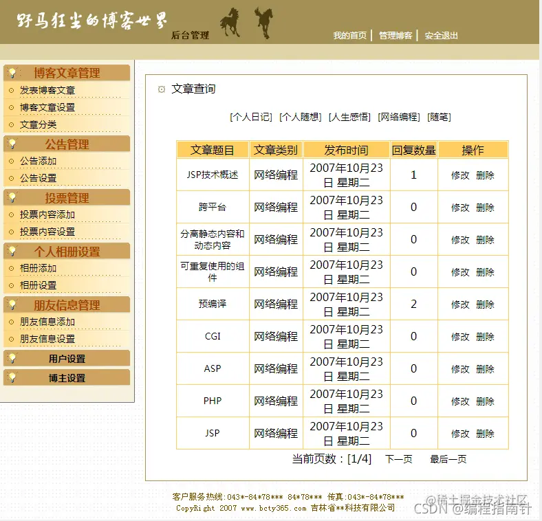 基于JSP实现个人博客 编程指南针 2021-11-07 513 阅读1分钟 项目编号 :KS020 运行环境: 开发工具:IDEA /ECLIPSE 应用服务器:TOMCAT8 JDK:1.7 MYSQL:5.7 开发技术: JSP/SERVLET/JDBC 项目运行截图: 以上是基于JSP实现个人博客的部分功能展示,本系统功能相对完整,比较适合做课程设计或期未作业使用。