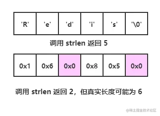 因为C字符串需要以空字符'\0'表示结尾,这使得C字符串无法正确存储包含'\0'的数据。因为没有提供额外的信息来区分'\0'是结尾还是数据的一部分。虽然可以使用base64等算法对数据进行编码来解决该问题,但这通常会降低代码的效率。