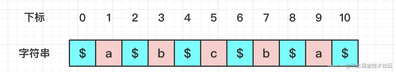 选择一个原字符串中不存在的字符作为占位符,将占位符插入到原字符串的 n+1 个间隔。比如字符串"abba",变为"$a$b$b$a$"。这使得所有回文子串的长度都变成了奇数!