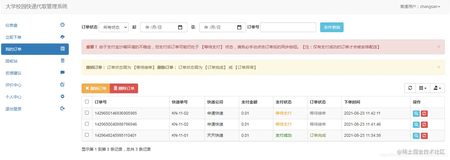 - 系统支持支付宝在线支付:采用支付沙箱完成支付操作