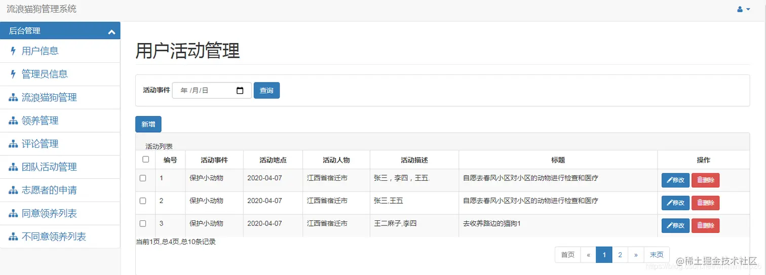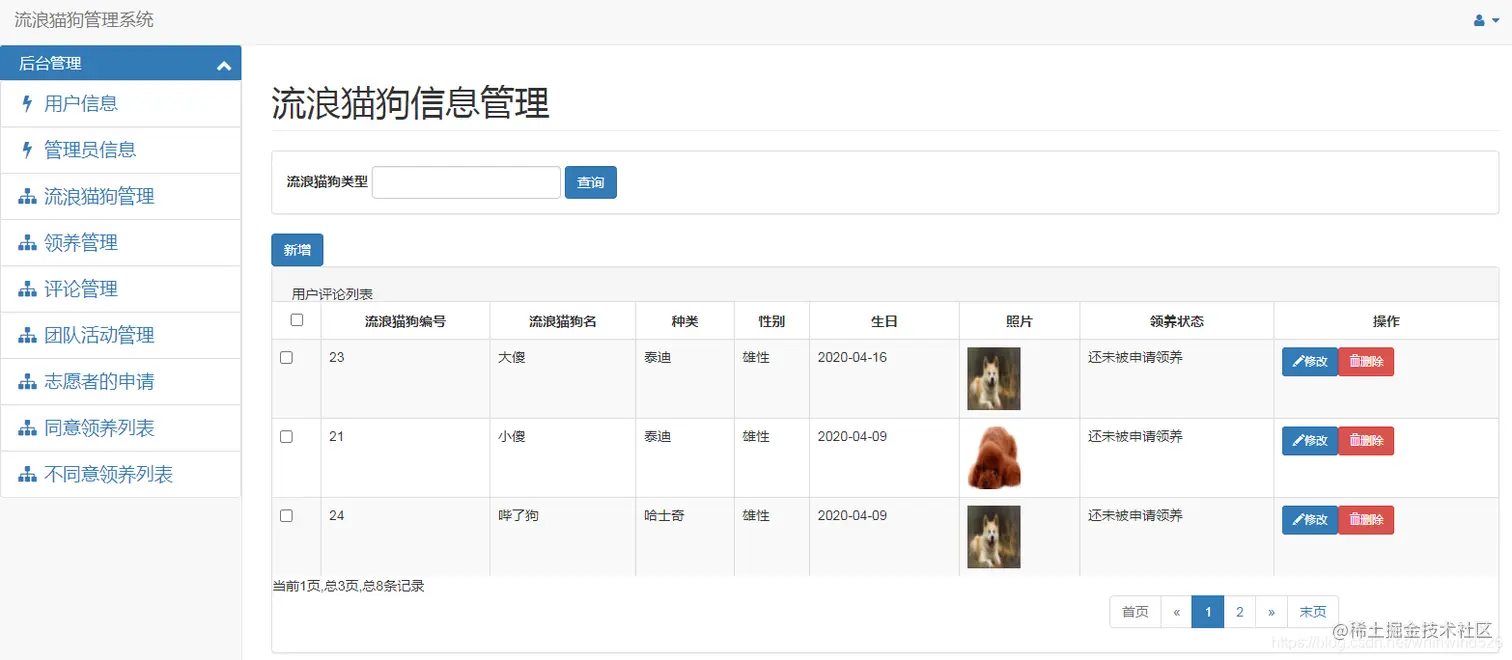 基于SSM实现宠物领养系统 编程指南针 2021-11-07 243 阅读1分钟 项目编号:BS-PT-052 运行环境 jdk7+tomcat7+mysql+IntelliJ IDEA(或eclipse)+maven 项目技术( 必填) spring+spring mvc+mybatis+bootstrap+jquery 下面展示一下系统的基本功能: 前端用户注册、登陆 后台用户登陆 后台管理界面 以上是基于SSM实现的宠物领养系统的功能展示。