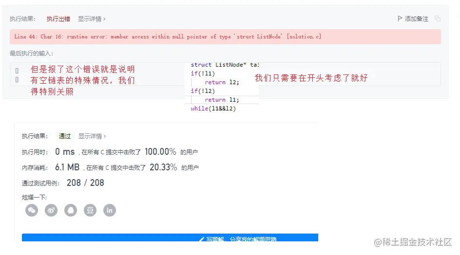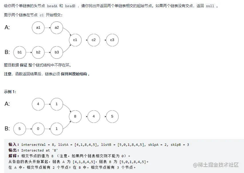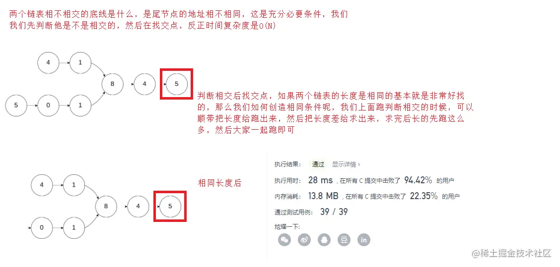 8. 相交链表(这题力扣有点不严谨考虑NULL跑不过去,不考虑反而跑过去了)