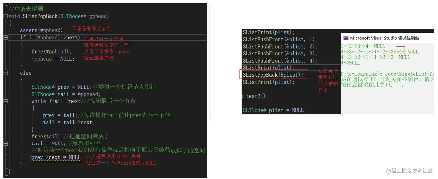 单链表尾删函数SListPopBack