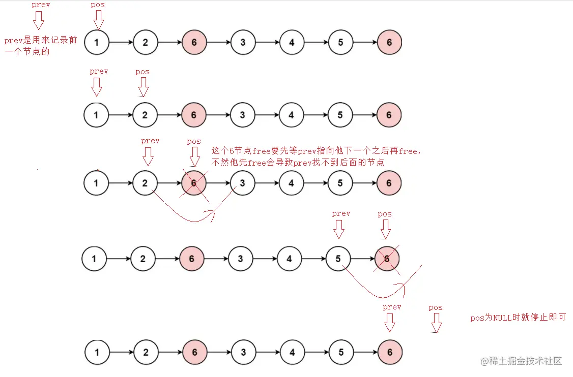 SLTNode* prev = NULL;//类似一个标记节点指针