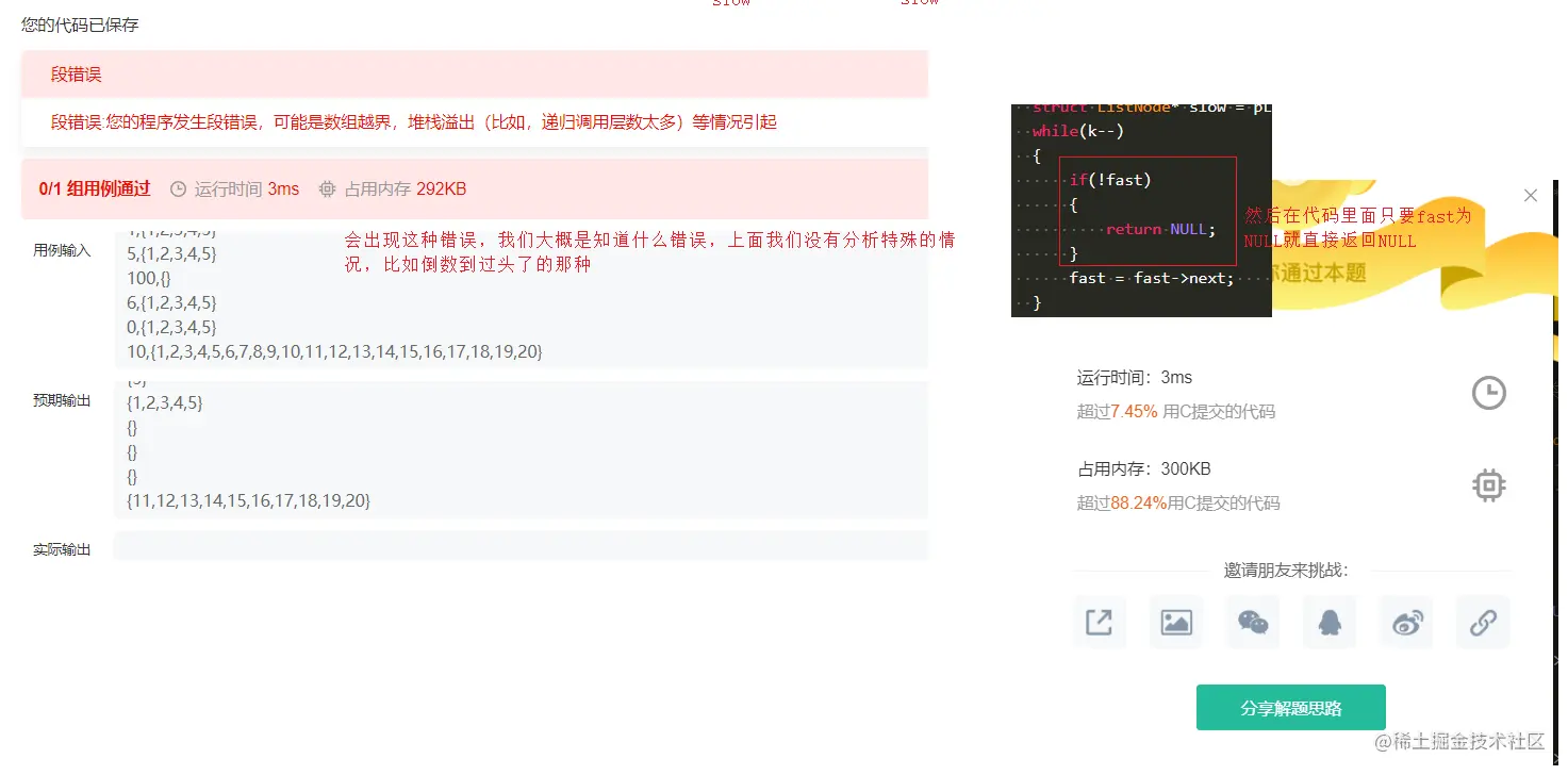 while(fast && fast->next)