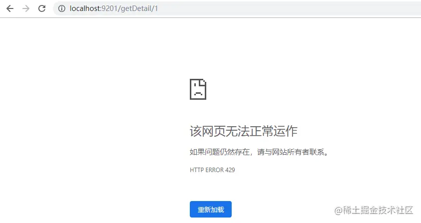 然后启动服务,连续请求地址http://localhost:9201/getDetail/1,就会触发限流,报429错误。