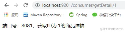 当请求路径http://localhost:9201/consumer/getDetail/1,能获得结果。