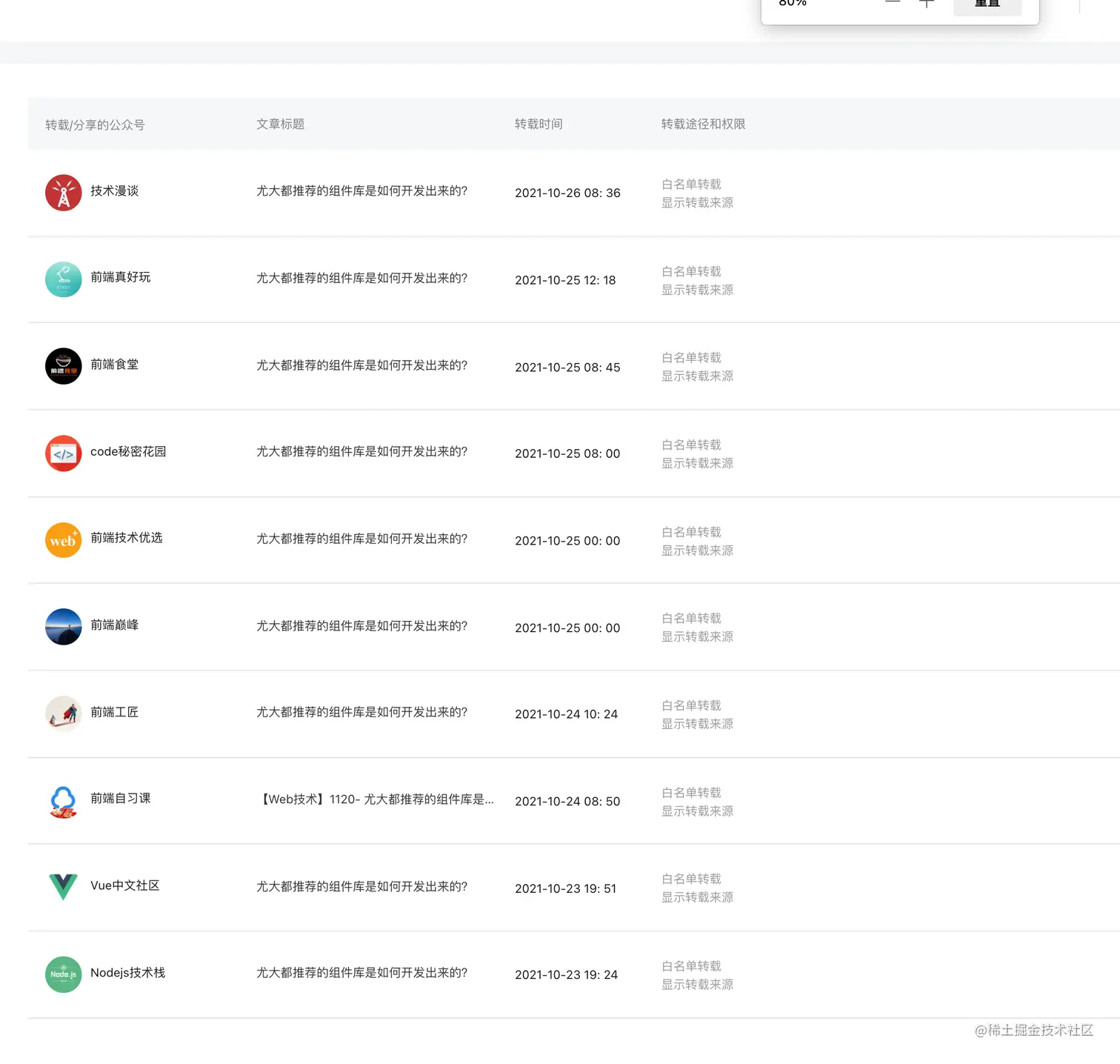 其中组件库方面的文章也受到了很多前端方面的朋友转载,感谢 零一、三元、世奇、LeviDing(丁丁)这些朋友的支持 💪(这里很多没有列全,但是都一并表达感谢 Thanks♪(・ω・)ノ)