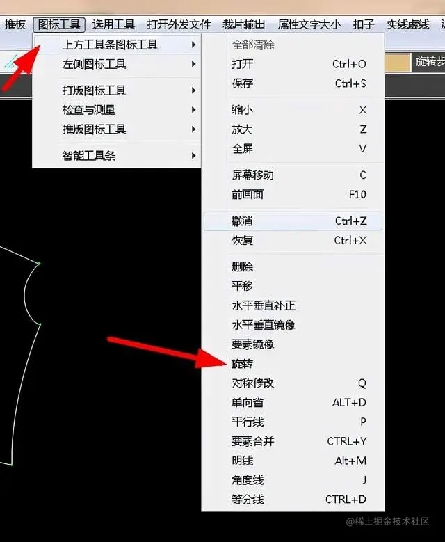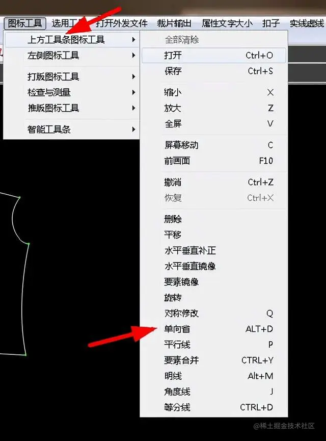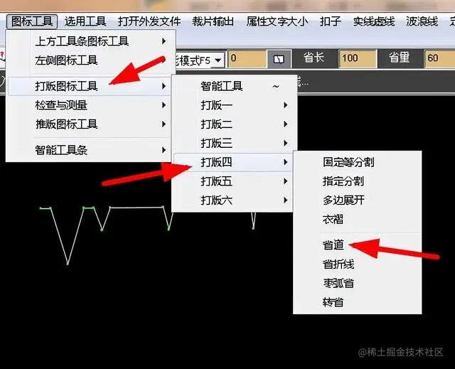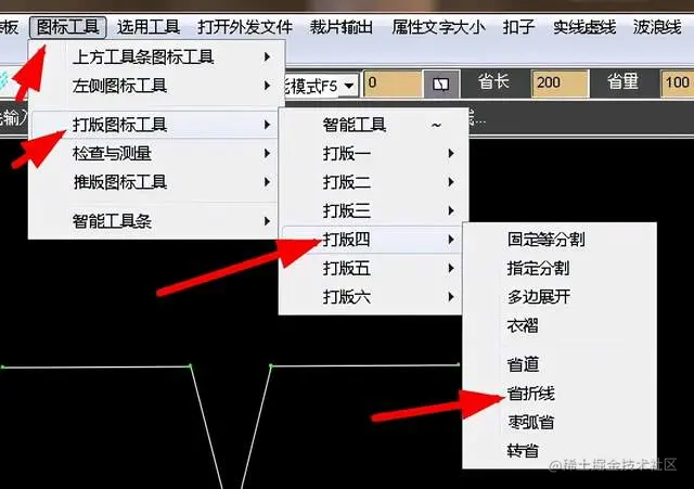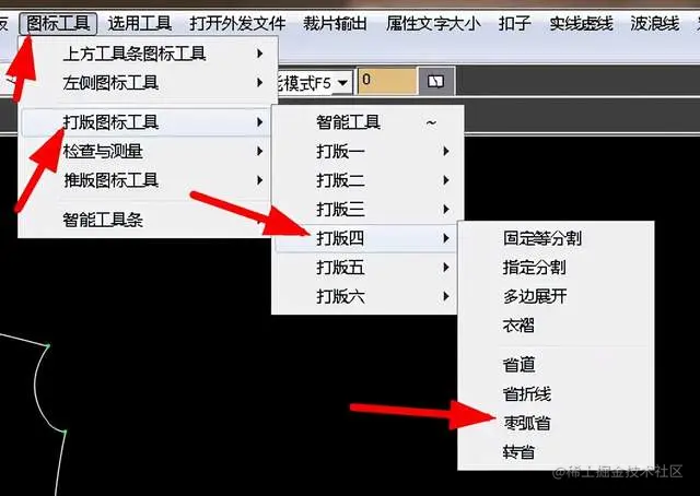 就是可以绘制一个菱形,打开图标工具菜单,选择打版图标工具,找到枣弧省,如图: