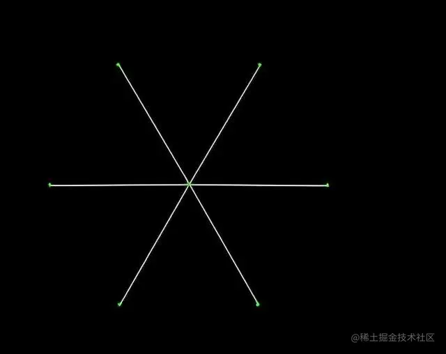 我们可以使用等分线绘制一个雪花图案,如图: