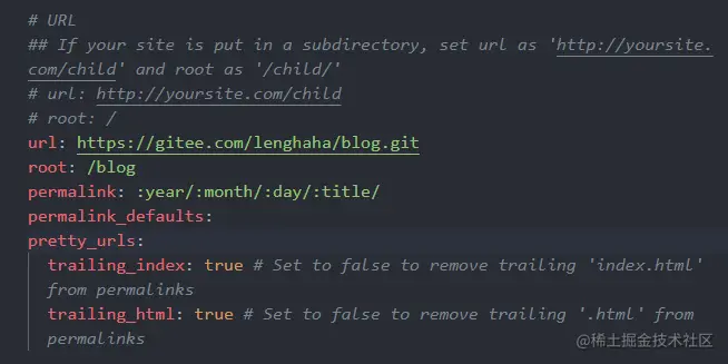 修改配置文件 在blog主目录下找到 _config.yml 打开进行配置,在代码的最底下找到此处