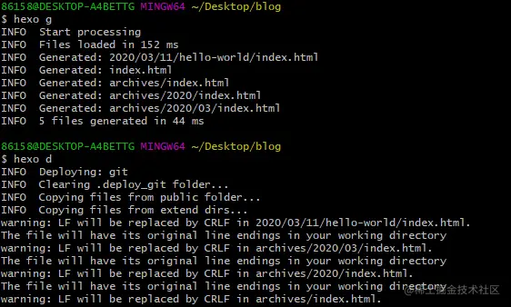 hexo g --d //发布文章 一键部署并推送到gitee仓库上