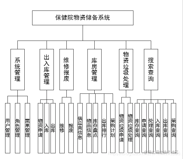 本项目基于SSM框架开发实现了保健院的信息化管理系统,本系统功能完整,界面美观大方,适合做毕业设计使用。系统具备完美的权限管理系统,可以在系统中自由定制系统角色和权限菜单,根据需要向不同的用户分配不同的角色,并可以单独分配权限。实现了系统权限的灵活管理。在业务上主要实现了系统管理模块、出入库管理模块、维修报废管理模块、库房管理模块、财务管理模块、医疗垃圾处理模块、搜索查询模块等功能。以下展示具体的系统功能图结构:
