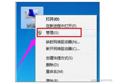 不能查看的情况下,右击【我的电脑】,单击【管理】