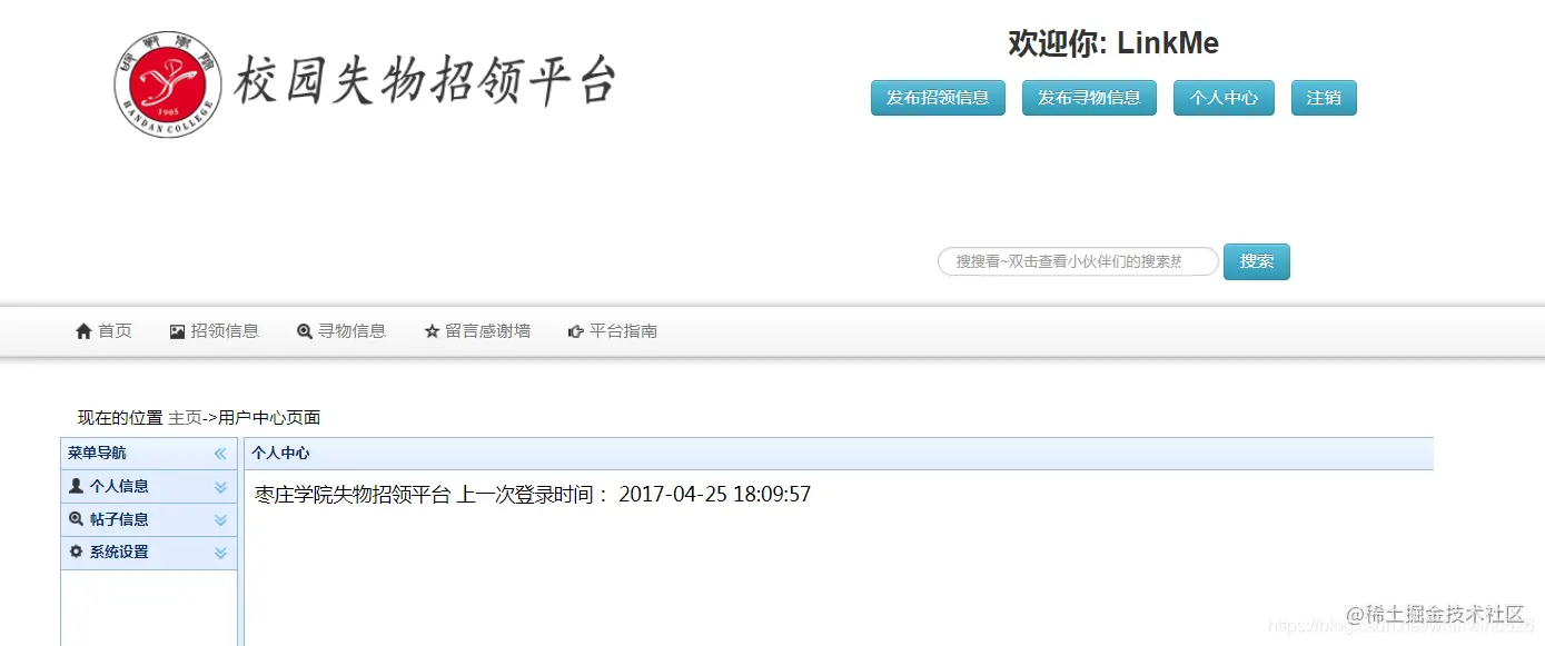 前端注册用户:主要实现注册用户在平台上发布招领信息和寻物信息,在个人中心中可以管理个人信息和自己发布的寻物和招领信等。在user表中state为1.
