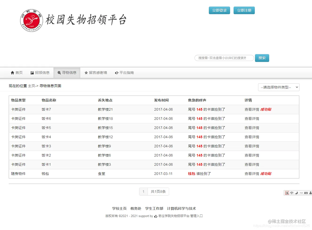 本系统基于SSM实现校园失物招领系统,功能完整,运行无误,界面简洁大方。