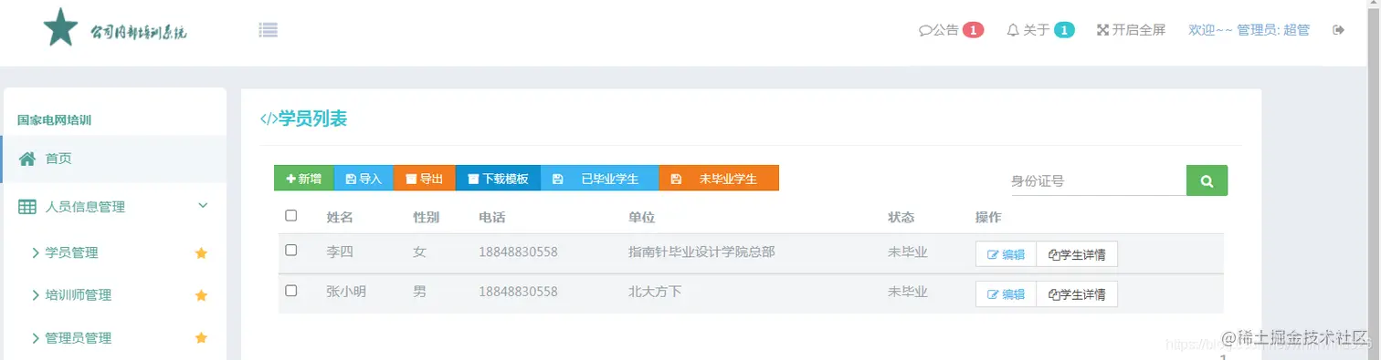 人员信息管理 - 学生管理