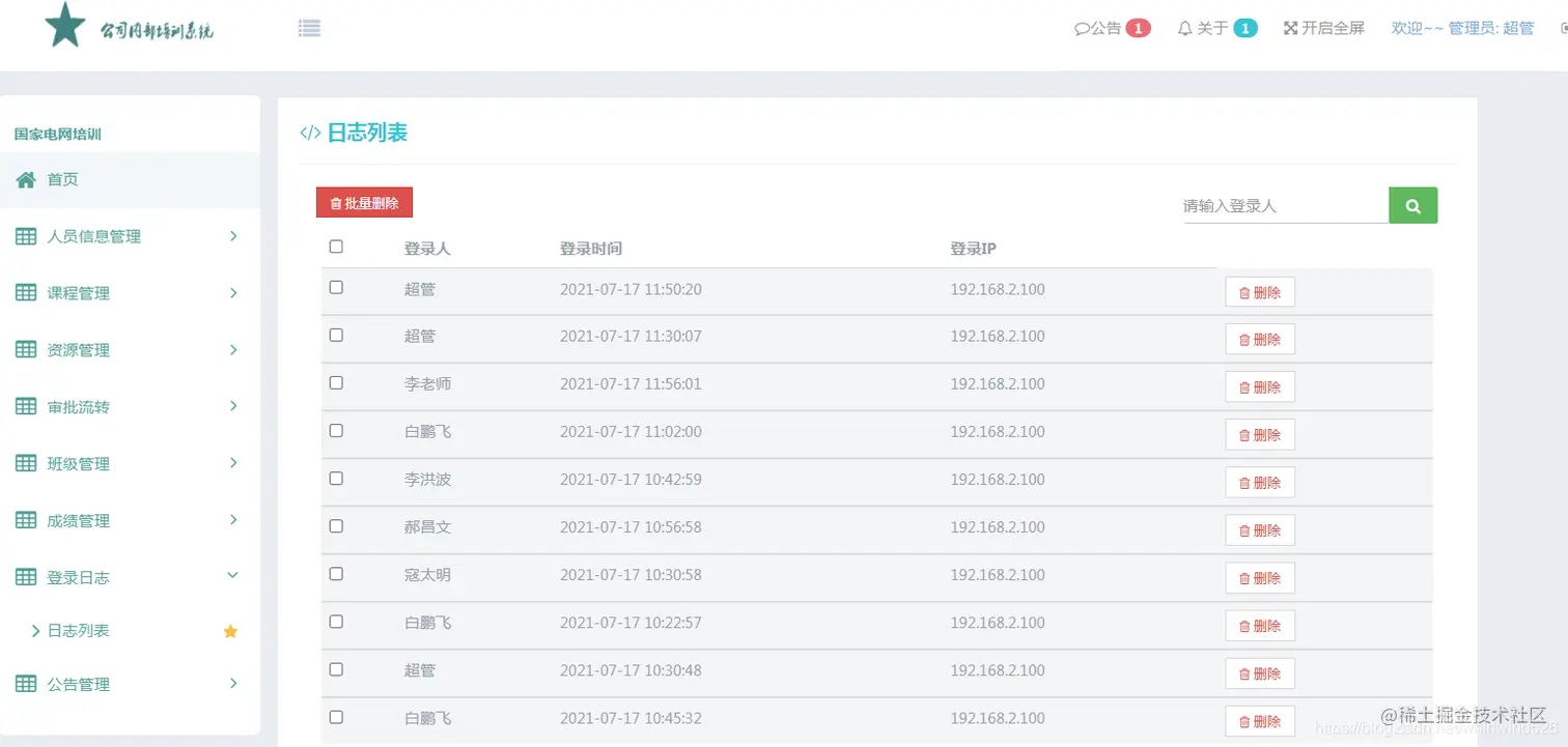 超级管理员:可以操作管理所有的信息模块