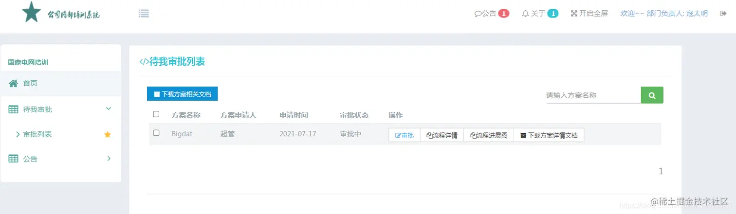 部门管理部:主要进行培训方案的审批