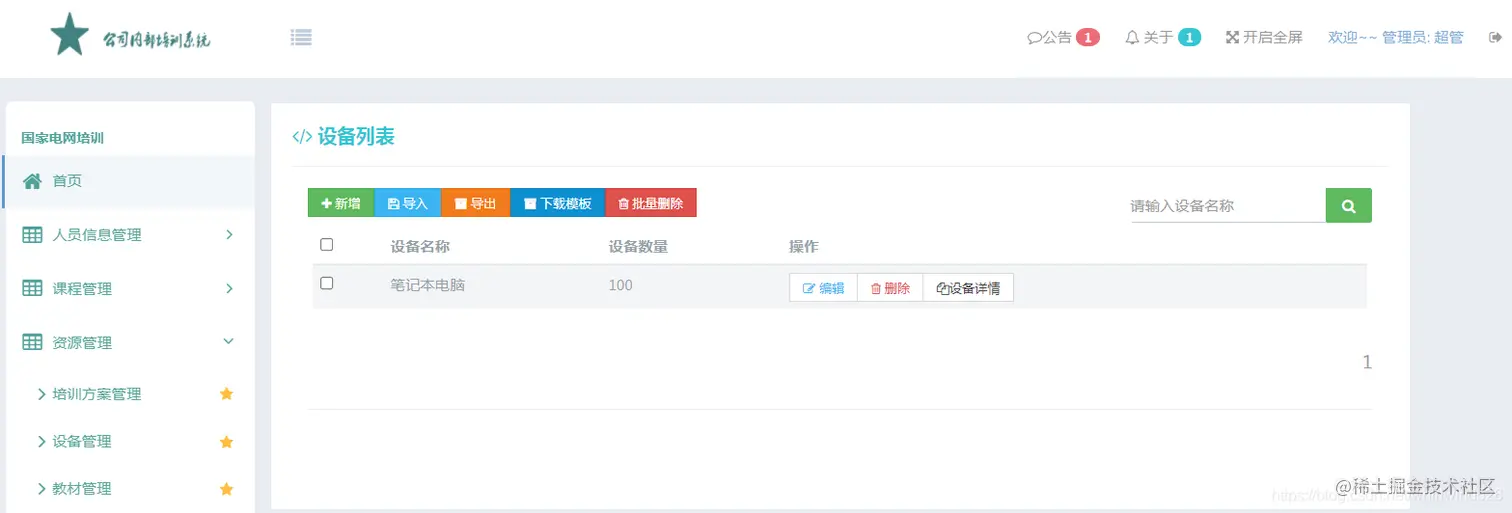 设备管理模块主要实现设备的增删改查以及导入导出的相关操作