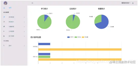 - 管理员可以进入后台,对系统的用户,单词,书籍,公告进行管理